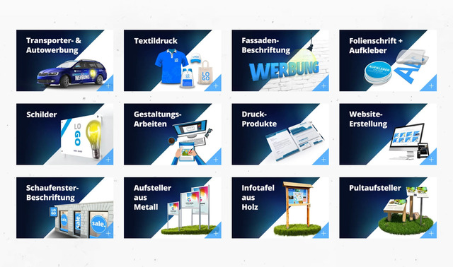 - Werbetechnik: Fassaden- und Innenbeschriftungen, Schilder und Aufsteller